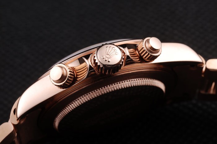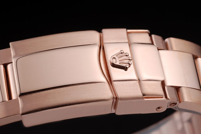 Crown: 18k rose-gold cutwork kroon met Rolex-logo en kleinere kronen aan weerszijden van it