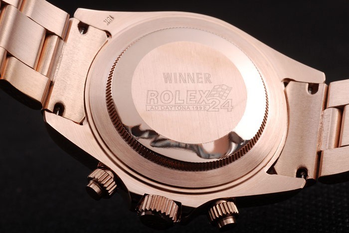 Back: 18k rose vergulde push-in zaak terug met Rolex inscription