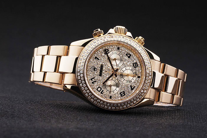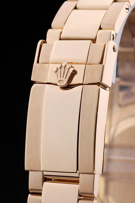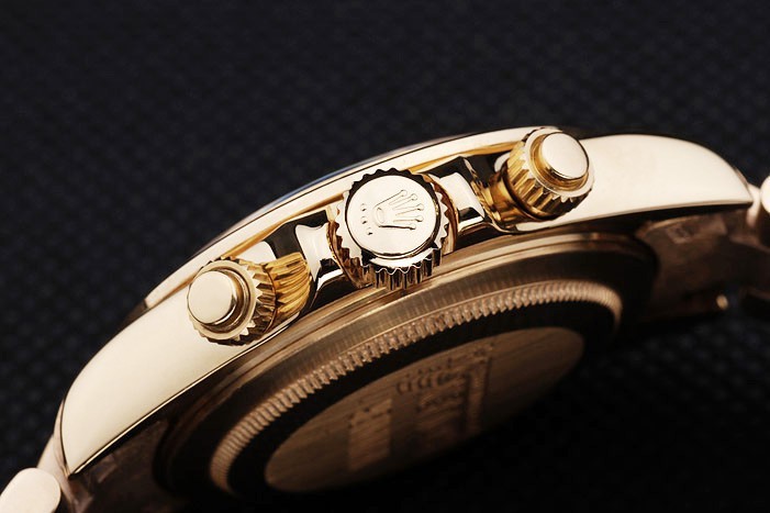 Crown: Gold afgezwakt cutwork kroon met Rolex-logo en twee extra kronen aan weerszijden van it