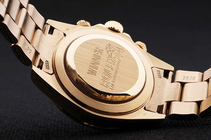 Back: Gouden-gestemde roestvrij staal push-in zaak terug met Rolex engraving