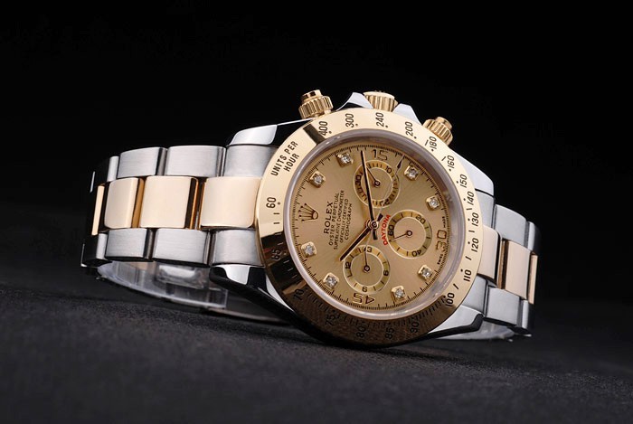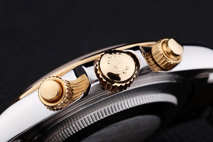 Crown: Gold afgezwakt cutwork kroon met Rolex-logo en twee extra kronen aan weerszijden van it
