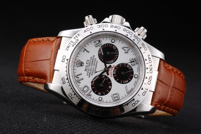 Crown: gepolijst roestvrij staal cutwork kroon met Rolex-logo en twee kleinere cutwork drukknop kronen aan weerszijden van it