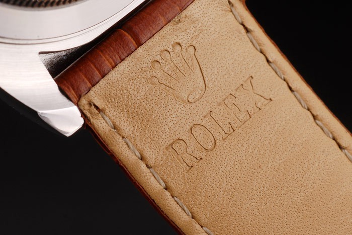 Bracelet: Rolex ge mbossed bruine krokodil lederen band met gegraveerde roestvrijstalen inzet sluiting met Rolex-logo op top
