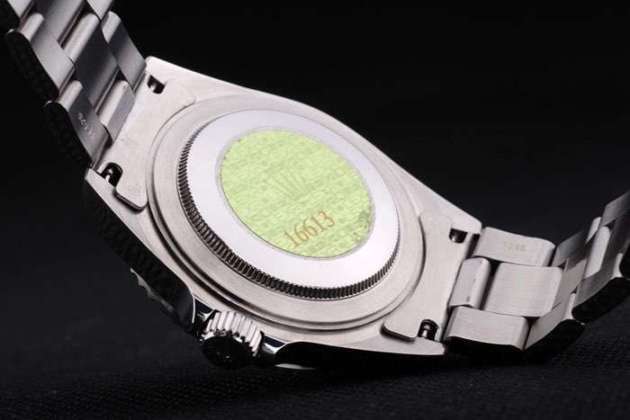 Back: Roestvrij staal push-in zaak terug met groene Rolex graveren stamp