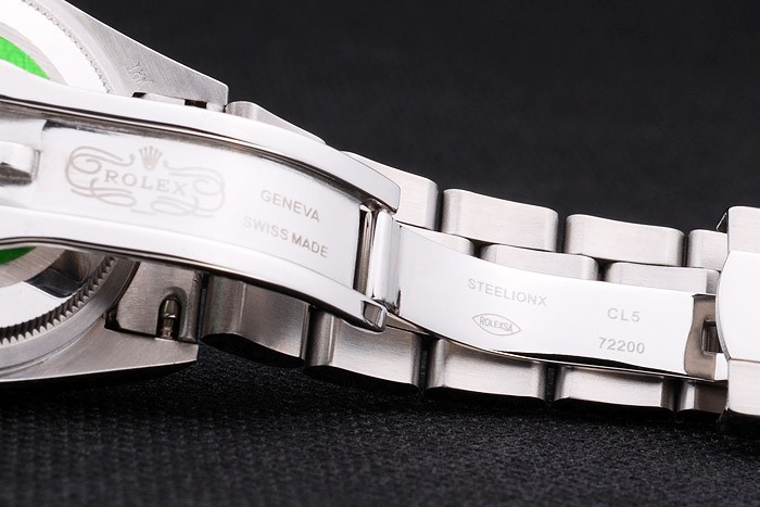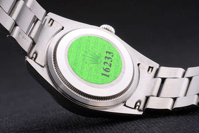 Back: Roestvrij staal push-in zaak terug met groene Rolex graveren stamp