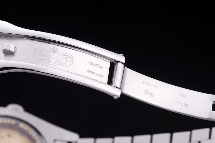 Bracelet: geborsteld en gepolijst roestvrij stalen schakelarmband met Rolex logo verborgen clasp