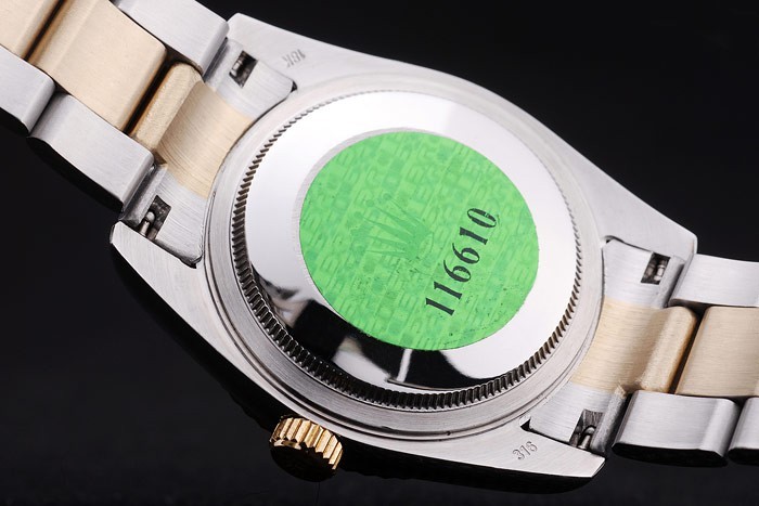 Back: Roestvrij staal snap-in terug met groene Rolex authenticiteit sticker