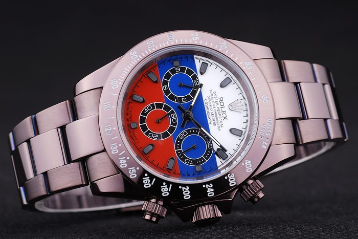 Crown: Rosy bruin roestvrij staal cutwork kroon met Rolex-logo en twee kleinere drukknop cutwork kronen aan weerszijden van it