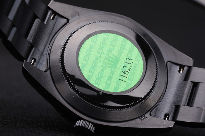 Back: Ion-plated-module terug met groene Rolex authenticiteit sticker