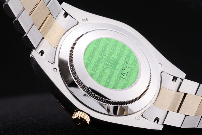 Back: Roestvrij staal snap-in terug met groene Rolex authenticiteit sticker