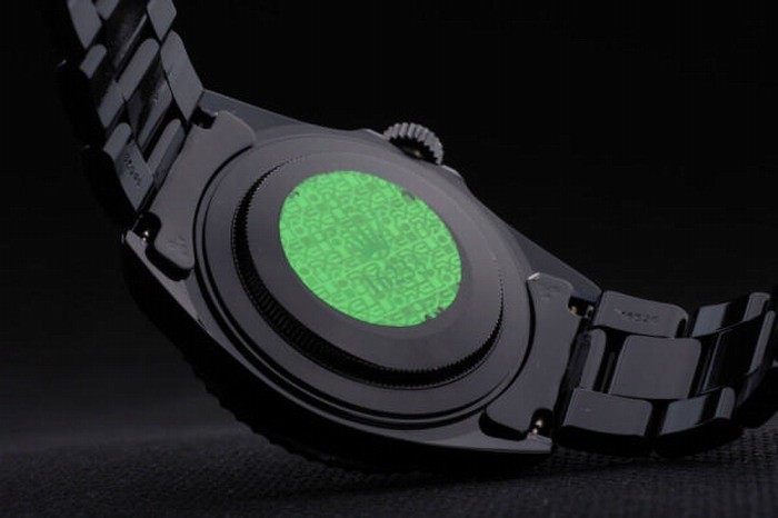 Back: Ion-plated roestvrij staal push-in zaak terug met groene Rolex logo stamp