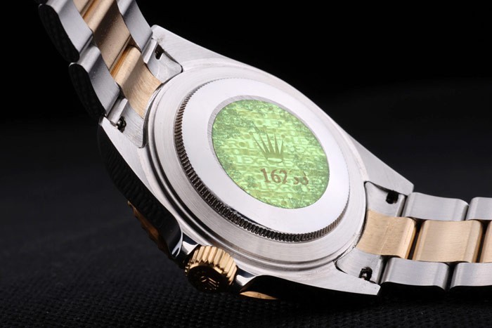 Back: Roestvrij staal push-in zaak terug met groene Rolex graveren stamp