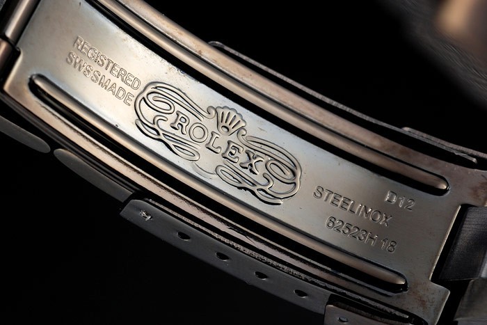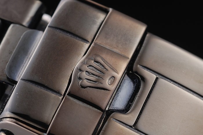 Bracelet: Ion-plated roestvrij stalen schakelarmband met gegraveerde fold-in sluiting met Rolex logo op top
