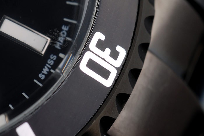 Bezel: Black ge mailleerde cutwork ring met index en Arabisch cijfer minuut markers