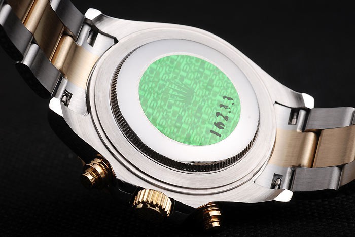 Back: gepolijst roestvrij staal push-in terug met groene Rolex logo stamp