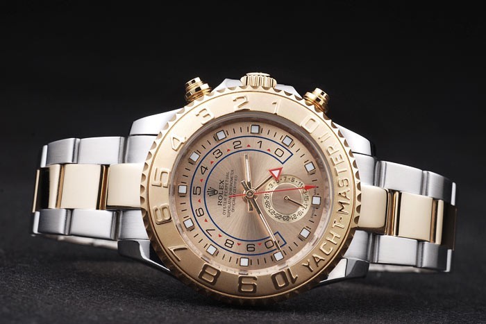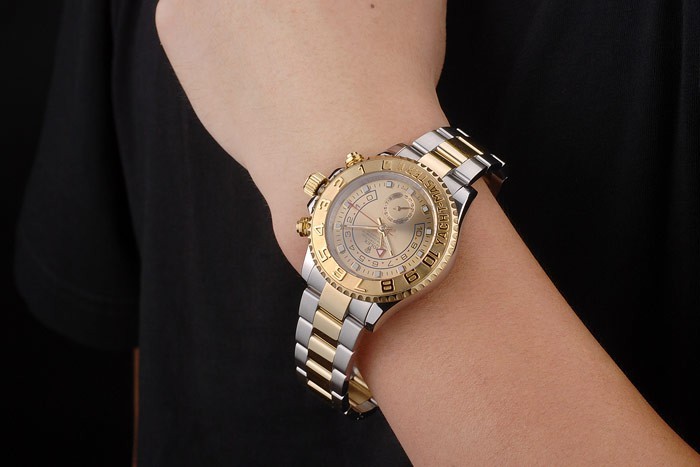 Bezel: Geel verguld eenrichtingsverkeer cutwork ring met 1-10 markeringen en Yacht Master graveren