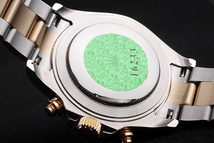 Back: gepolijst roestvrij staal push-in terug met groene Rolex logo stamp