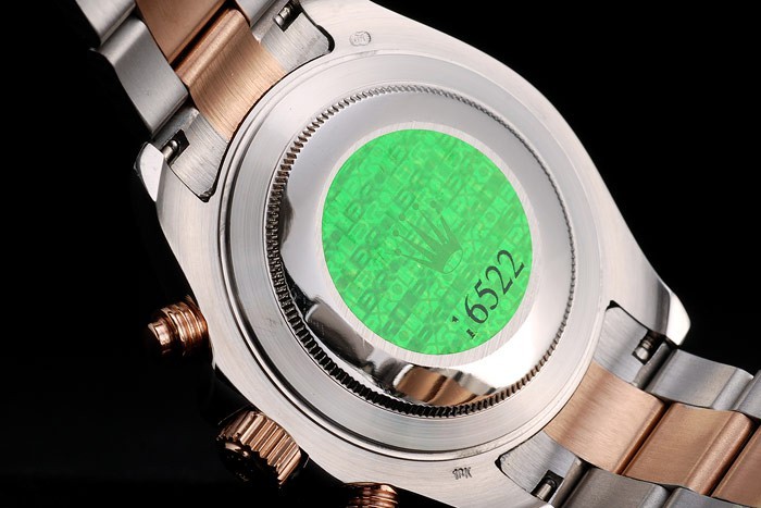 Back: Roestvrij staal snap-in terug met groene Rolex authenticiteit sticker