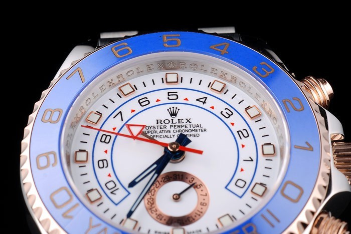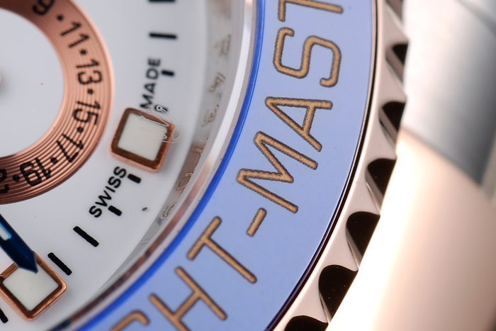 Bezel: in een richting cutwork blauwe keramische bezel met gegraveerde rose-goud uur markers