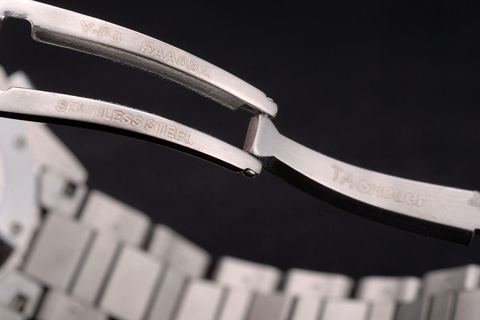 Crown: gepolijst roestvrij staal cutwork kroon met Tag Heuer logo en twee lange cutwork drukknop kronen aan weerszijden van het samen met een cutwork kroon op het tegenovergestelde side