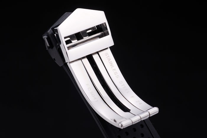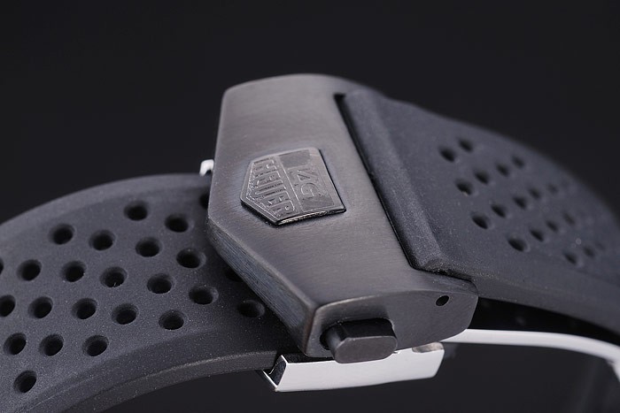 Bracelet: Geperforeerde zwarte rubberen band met Tag Heuer gegraveerde ionen plated drukknop verborgen clasp