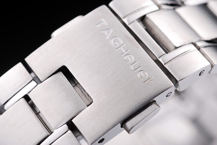 Bracelet: geborsteld en gepolijst roestvrij stalen schakelarmband met push-versie fold-in sluiting met Tag Heuer engraving