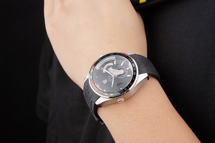 Crown: gepolijst roestvrij staal cutwork kroon met Tag Heuer logo plus twee extra kronen aan beide zijden en een op de tegenover top corner