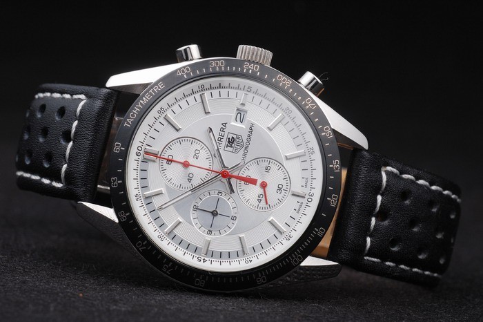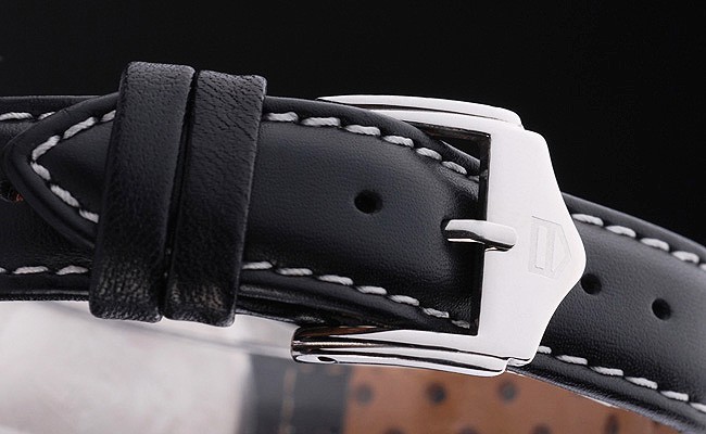 Bracelet: gestructureerde zwarte lederen band met warmte reli f stempel en de Formule 1 Tag Heuer gegraveerde hook-gesp clasp