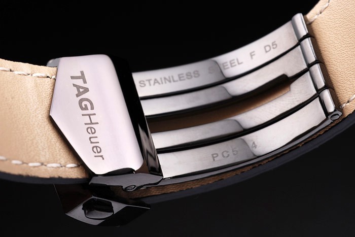 Bracelet: Black krokodil lederen band met warmte reli f stempel Tag Heuer en-ion-plated push-versie vouw-in sluiting met Tag Heuer logo op top