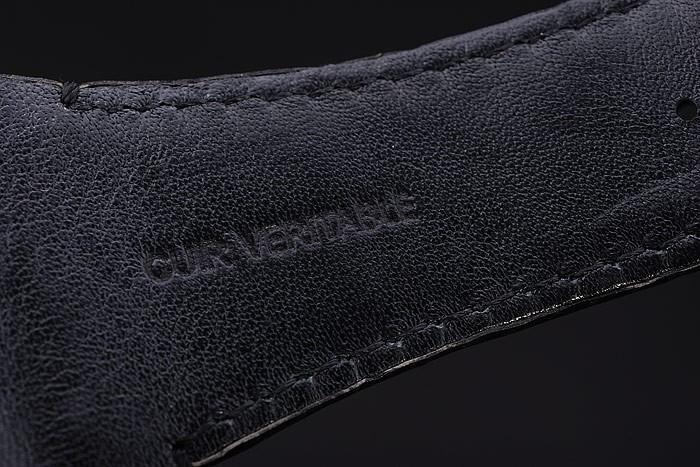 Bracelet: Zwart lederen band met warmte reli f stempel en Tonino Lamborghini Tonino Lamborghini logo gegraveerd en in reli f rose-goud plated plooi-in flip-over hook clasp