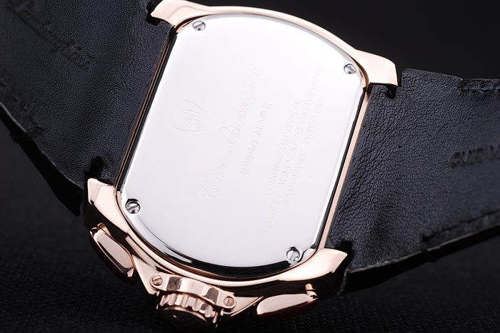 Crown: 18k rose vergulde cutwork kroon met Tonino Lamborghini logo en twee rode glazuur overgoten langwerpig drukknop kronen aan weerszijden van it