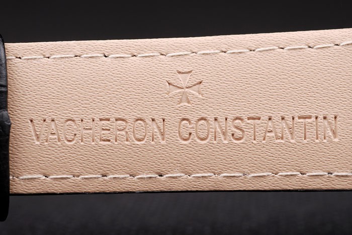 Bracelet: Black krokodil lederen band met warmte reli f Vacheron Constantin stempel en gepolijst roestvrij staal Vacheron Constantin logo hook-gesp clasp